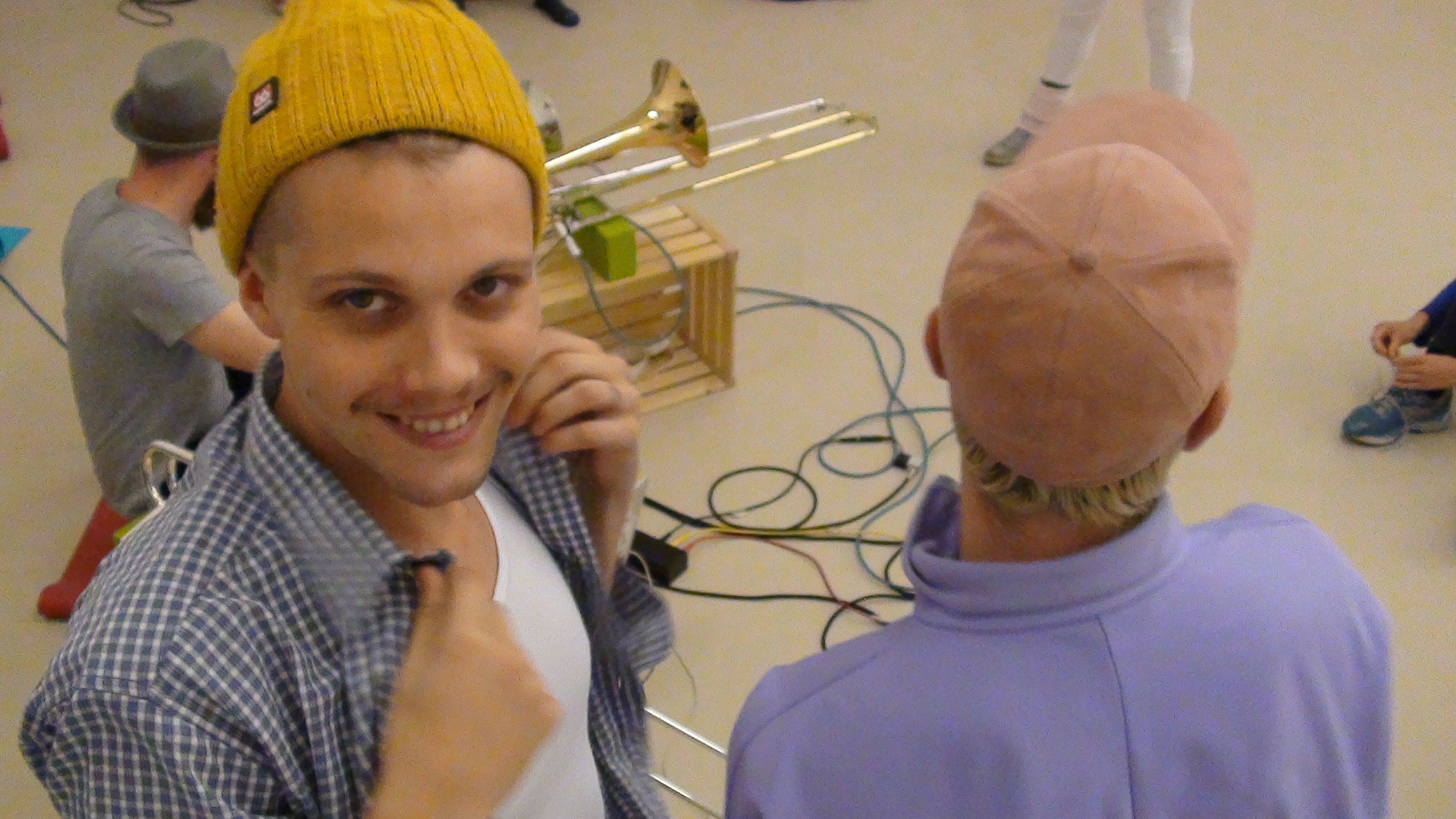 Drei Männer unter einer Decke
